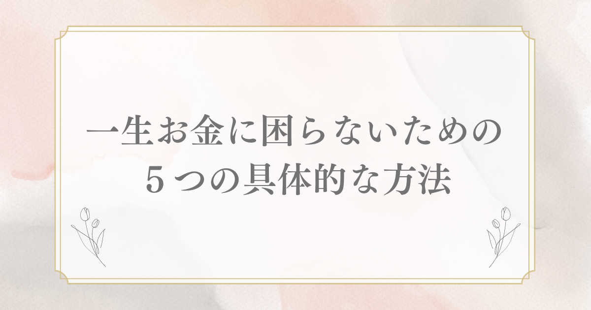 お金に関するストレスから解放され、安定した生活を送るためには、賢いお金の使い方と計画が重要です。以下に、一生お金に困らないための具体的な方法を5つご紹介します。